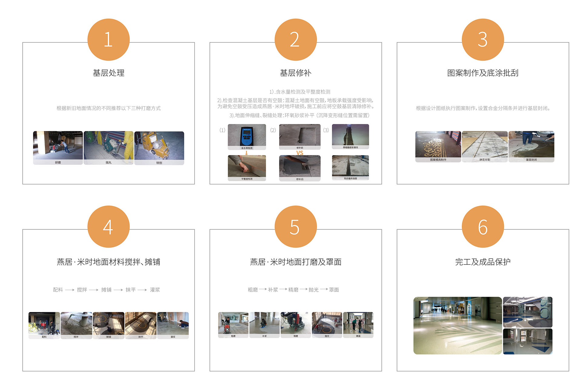 選用以再生透明玻璃、溶融石英、普通石英石、大理石碎石顆粒、可再生玻璃顆粒、陶瓷顆粒、玻璃鏡片、彩色玻璃顆粒、優(yōu)質天然貝殼、馬賽克、鵝軟石等高環(huán)保材為主,并與骨材與高分子樹脂相混合,現場澆筑(攤鋪)、研磨、拋光等20多道精湛工藝技術。